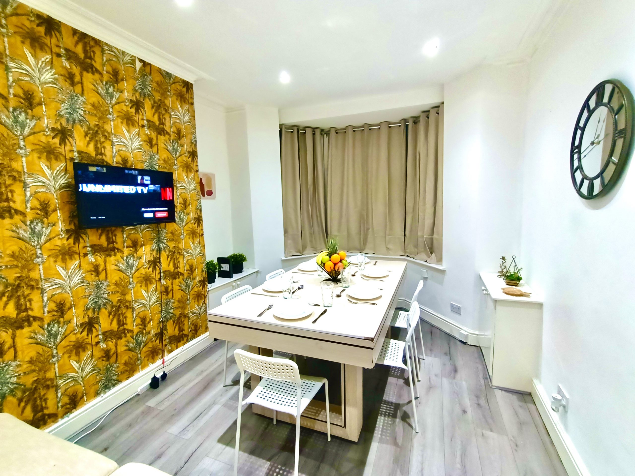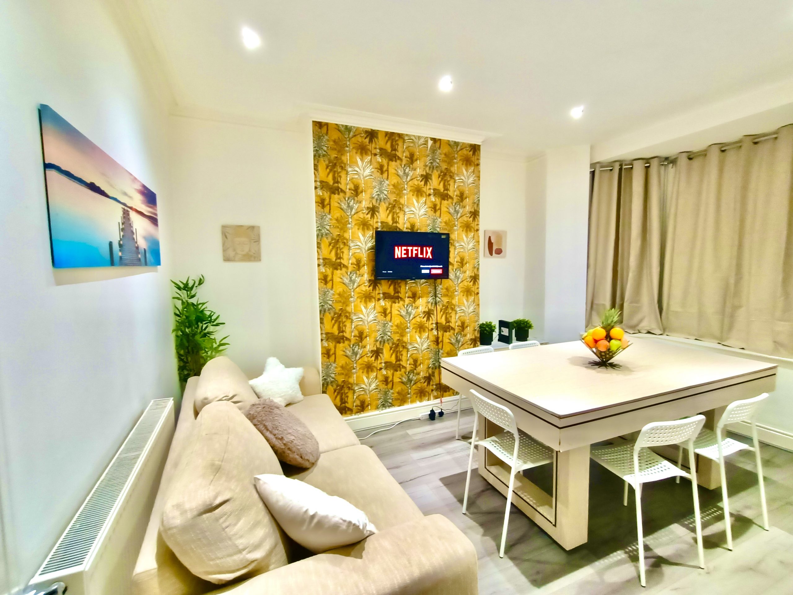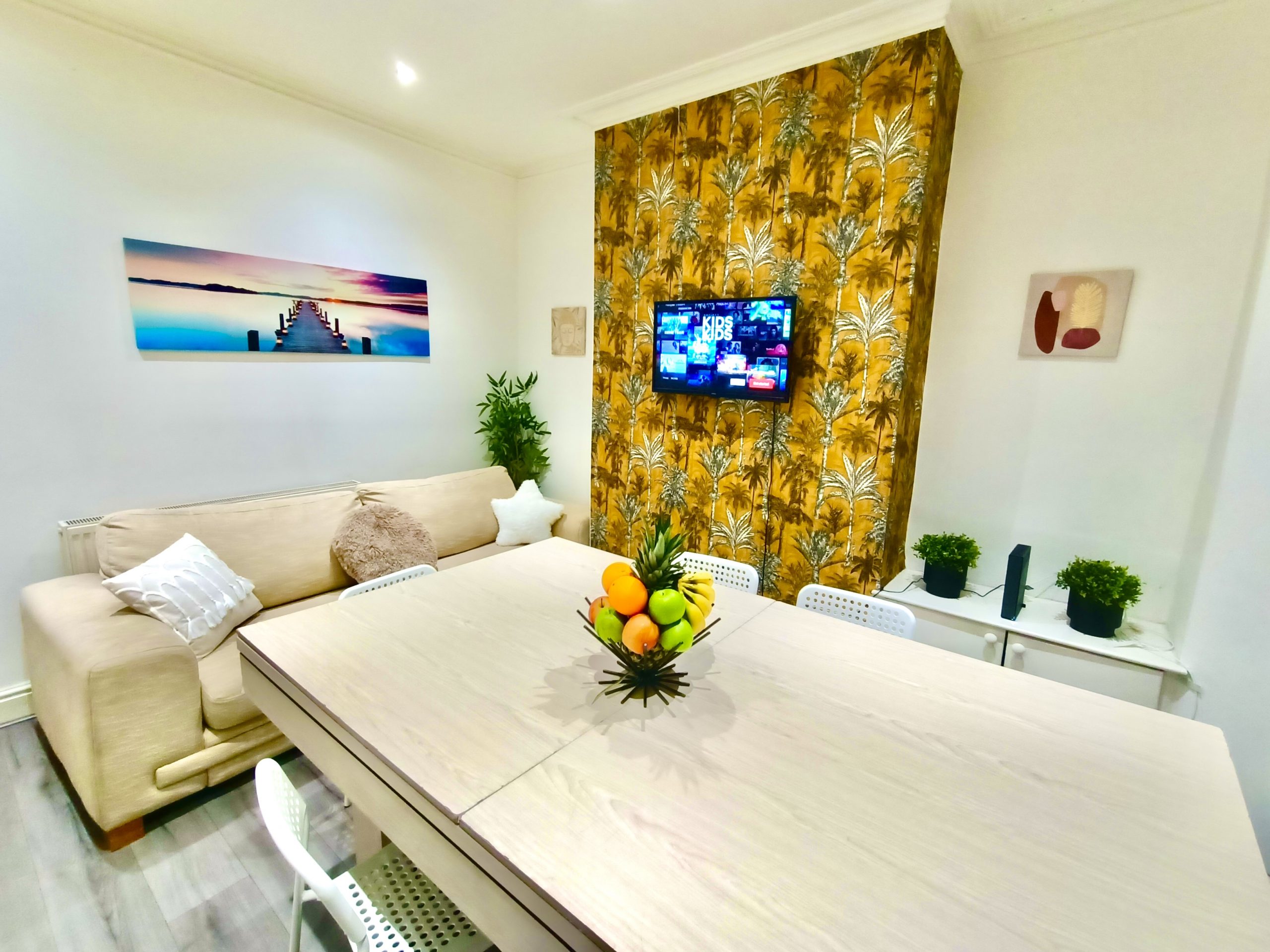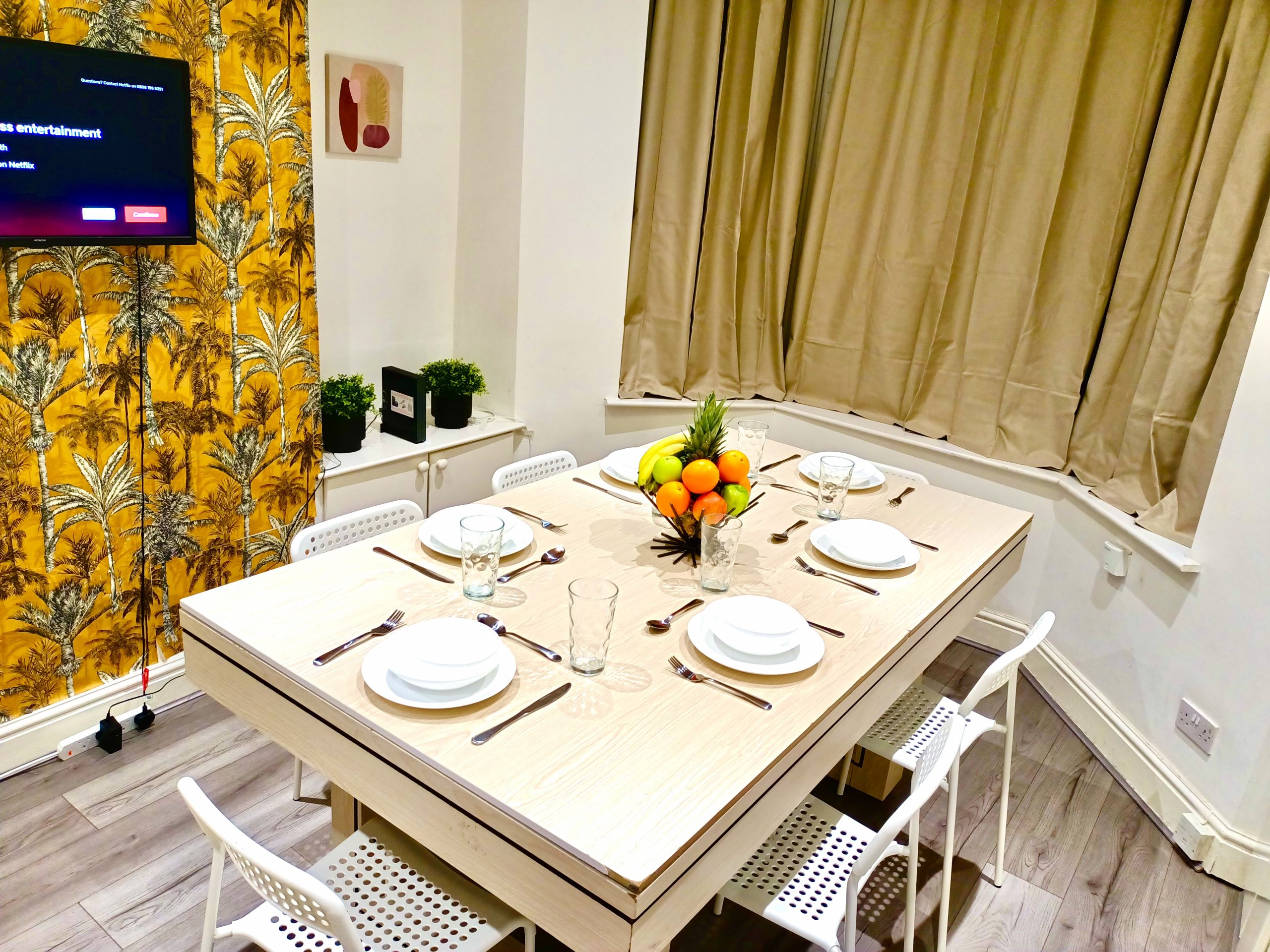 Located just 1.4 km from Anfield Stadium, this stylish and spacious 4-bedroom home is perfect for large groups, families, and football fans. The property features a dining table that doubles as a pool table, a fully equipped kitchen, a flat-screen TV with streaming services, free WiFi, and on-site parking.